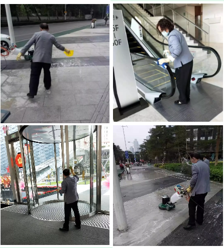 提高了大厦内的消毒清洁频次,重点消毒人多接触的位置,如:闸机、手扶梯、电梯按钮、门把手、卫生间按钮等。